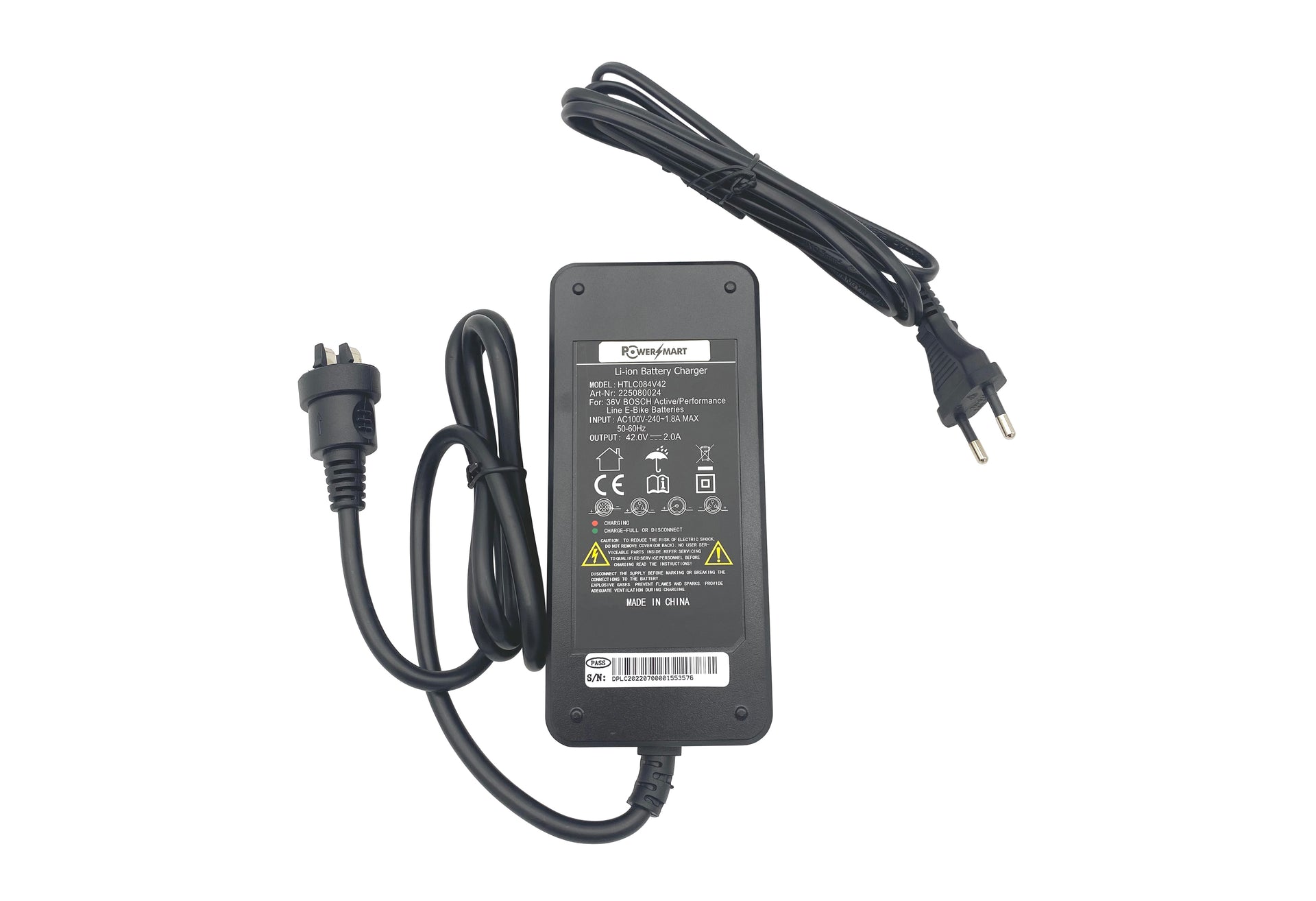Voltage: 100-240V~50-60Hz~1.8A Max (Input), 42V-2.0A (Output)