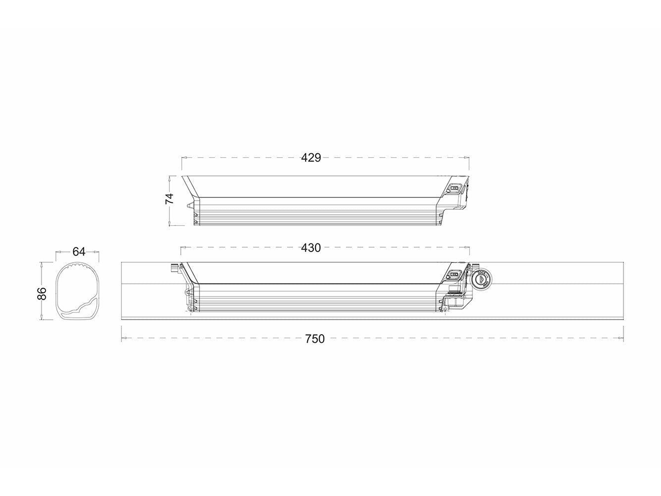 Dimension: 430 x 68 x 74 mm