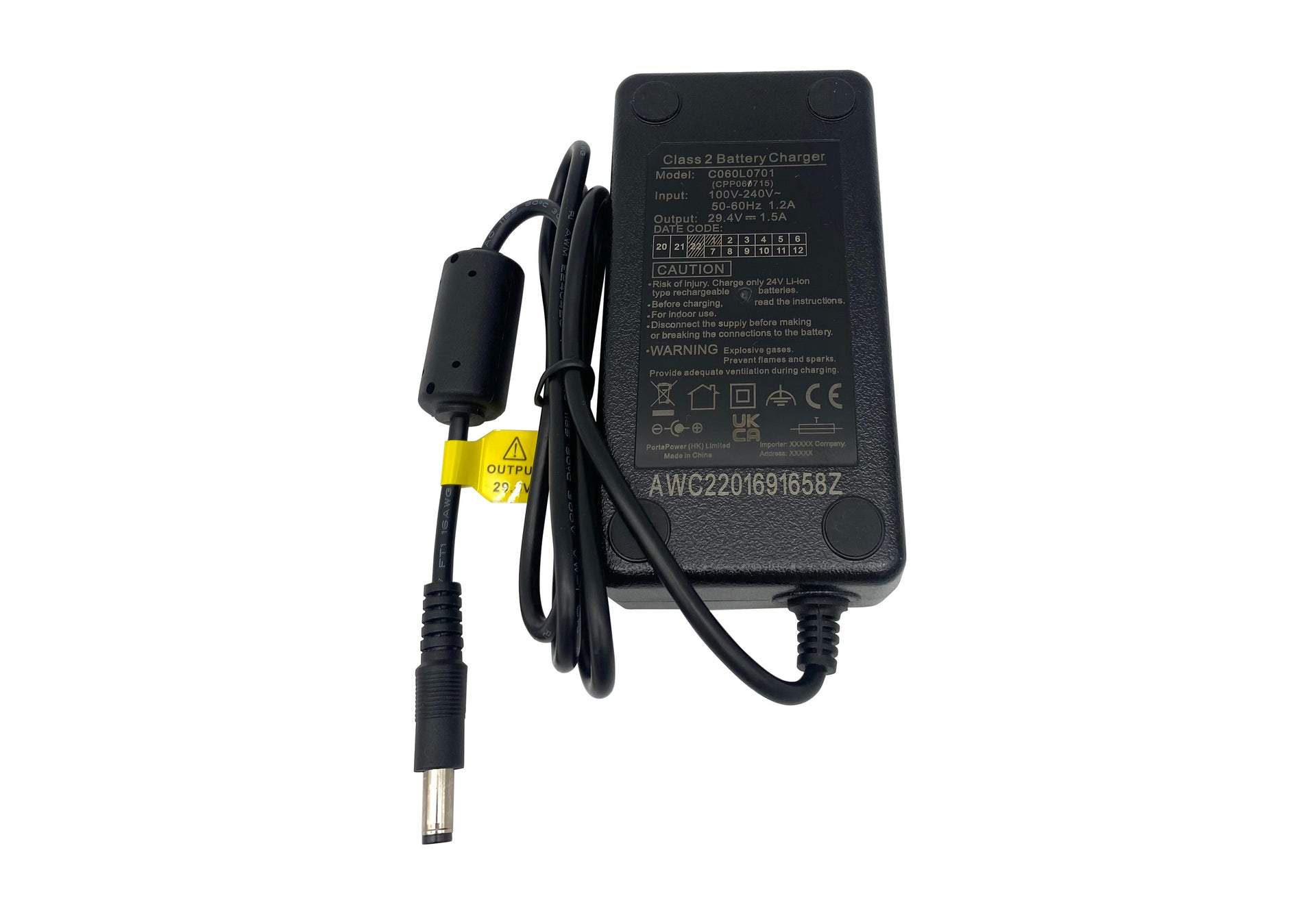 Voltage: 100V-240V (Input), 29.40V (Output), 1.5 A (Output Current)