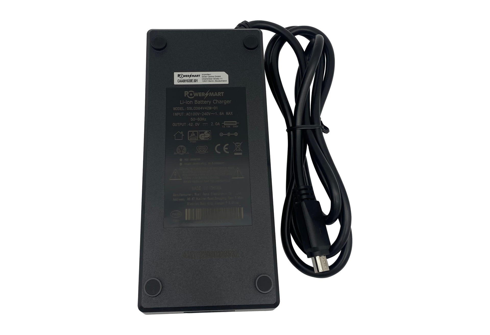 Voltage: 100V-240V (Input), 42 V (Output), 2.0 A (Output Current)