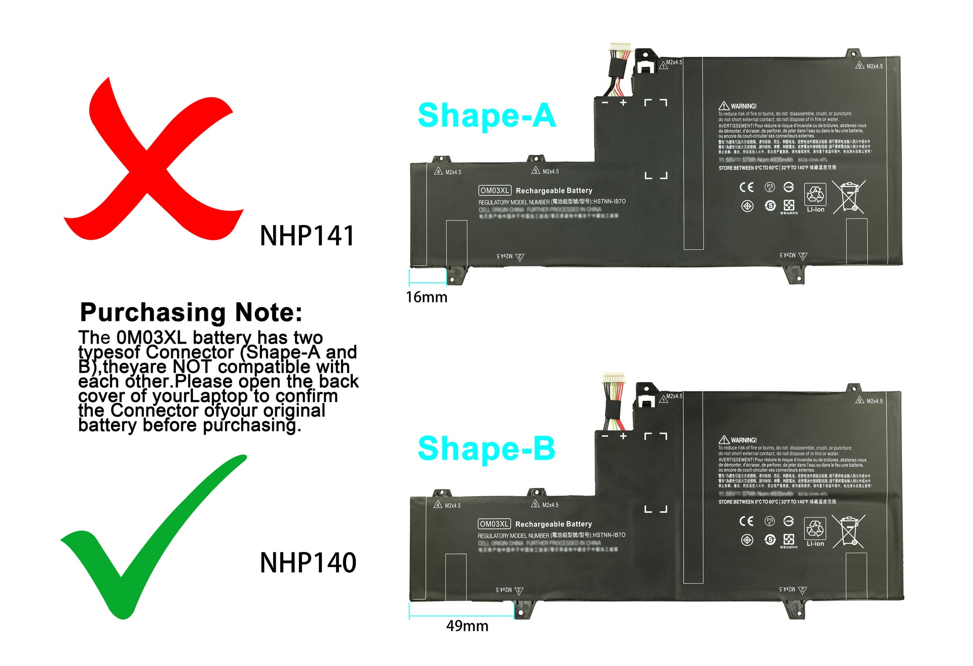 Replacement for HP 863280-855, EliteBook X360 1030 G2 Series, HSN-I04C, HSTNN-IB7O, Notebook OM03057XL 863167-171 Laptop Battery